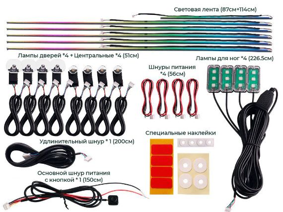 - Подсветка дверных карт, ручек, дверных отсеков, подсветка ног и т.д.